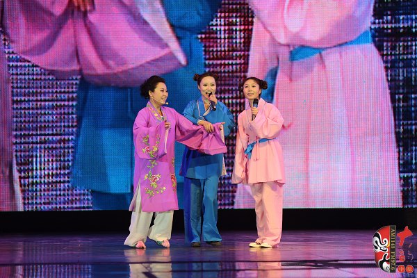 戲曲廣播主持人丁蘭飾秦香蓮(左)、主持人張琳飾英哥(中)、主持人李鑫飾冬妹(右)