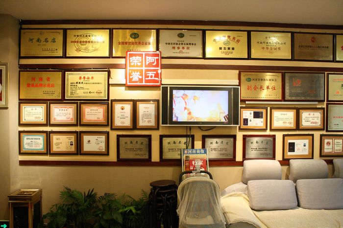 滿滿一面墻的獎狀讓每一個來這里的人都能深刻的了解到阿五美食的嚴謹風(fēng)格,