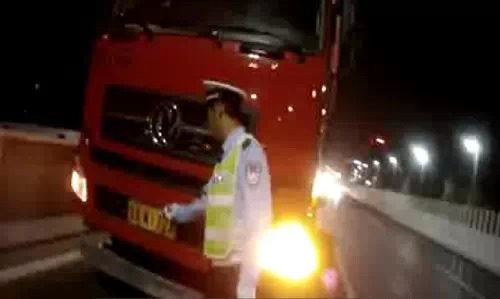 二、交警夜查隴海高架渣土車,處罰和曝光一個都不少