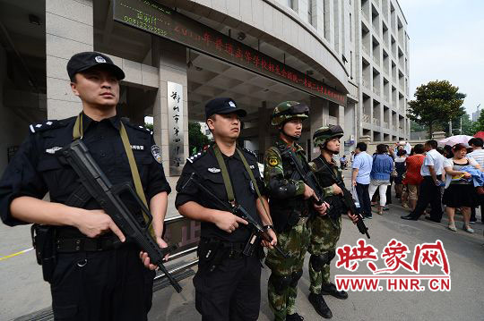 鄭州警方根據(jù)全市考區(qū)的實際情況進行了警力部署:市內(nèi)每個考點安排轄區(qū)派出所民警6名、交巡警6名、特警4名;上街、中牟、滎陽、新鄭、新密、登封每個考點安排執(zhí)勤民警16名,其中:派出所民警6名、交警6名、特警4名。為全力服務考生,鄭州警方要求各單位執(zhí)勤民警在開考前1個小時到達指定崗位,認真履行各項職責,考試結束40分鐘后撤崗。對位于繁華路段、周邊治安復雜或交通擁堵路段的學校有針對性的增派警力,切實加強考點及周邊安全保衛(wèi)工作。