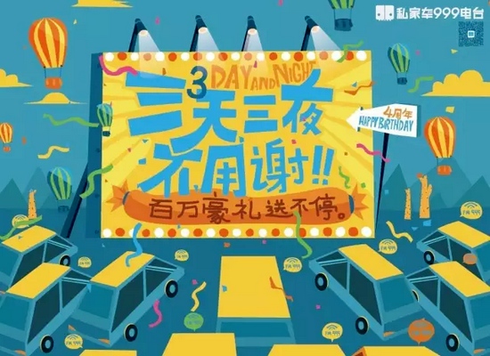 跟大家在一起的快樂說都說不完啊,私家車999四周歲生日將近,咱們再一起玩?zhèn)€大的?。?/p>