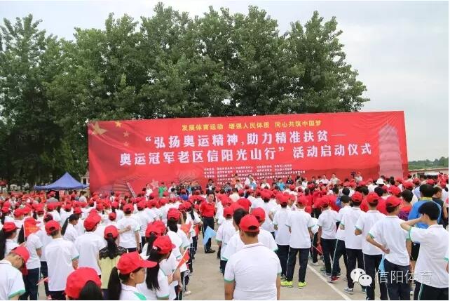 6月20日上午,由國(guó)家體育總局人力資源開(kāi)發(fā)中心、河南省體育局和信陽(yáng)市人民政府主辦,信陽(yáng)市體育局、信陽(yáng)市文明辦、信陽(yáng)市扶貧辦和光山縣人民政府承辦的“弘揚(yáng)奧運(yùn)精神,助力精準(zhǔn)扶貧——奧運(yùn)冠軍老區(qū)信陽(yáng)光山行”活動(dòng)啟動(dòng)儀式在光山文殊一中隆重舉行。