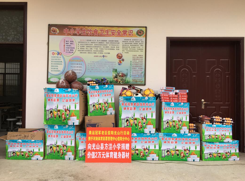 據(jù)信陽(yáng)市人民政府和市體育局的相關(guān)工作要求和部署,借此機(jī)會(huì)進(jìn)一步提升體育彩票的公益品牌形象,作為本次活動(dòng)的支持單位,信陽(yáng)體彩分中心在啟動(dòng)儀式結(jié)束后,在光山縣文殊鄉(xiāng)方洼小學(xué)舉行了“體育彩票 公益助學(xué)”體育器材捐贈(zèng)儀式,國(guó)家、省、市的相關(guān)領(lǐng)導(dǎo)、奧運(yùn)冠軍一行20余人參加活動(dòng)。簡(jiǎn)短的捐贈(zèng)儀式上,信陽(yáng)體彩分中心向方洼小學(xué)捐贈(zèng)體育器材,校方回贈(zèng)錦旗,雙方還簽訂了器材接收和管理協(xié)議,相信這些體育器材一定能陪伴孩子們健康茁壯成長(zhǎng)。