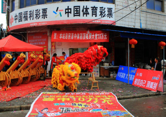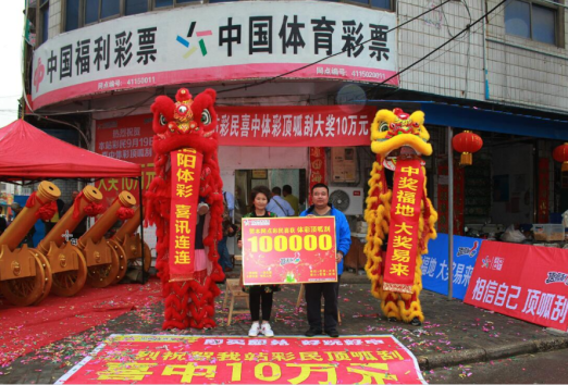 當(dāng)天下午,雖然下過小雨,但銷售網(wǎng)點(diǎn)門前仍然是人滿為患,好不熱鬧。聽說銷售點(diǎn)中了大獎(jiǎng),很多附近的彩民都來圍觀“中獎(jiǎng)福地”,業(yè)主張女士還專門請(qǐng)來了兩組舞獅隊(duì)進(jìn)行即興表演,一時(shí)間現(xiàn)場氣氛達(dá)到頂點(diǎn),據(jù)張女士說,自從她的銷售站出了大獎(jiǎng),慕名而來“沾喜氣”的彩民很多,大家都是試試手氣隨手刮上一兩張頂呱刮彩票。