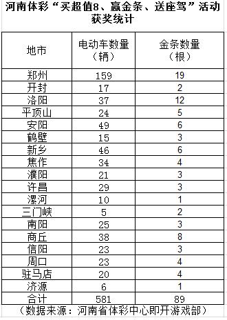 [摘要] 9月份開展“買超值8、贏金條、送座駕”即開型體育彩票促銷活動早已圓滿收官,18地市彩民瓜分581輛“座駕”和89根金條!從獲獎情況看,鄭州、安陽、新鄉(xiāng)的彩民中得“座駕”數(shù)量位居前三甲,從獲得金條數(shù)量看,鄭州、洛陽、商丘彩民的獎品含金量則居前。