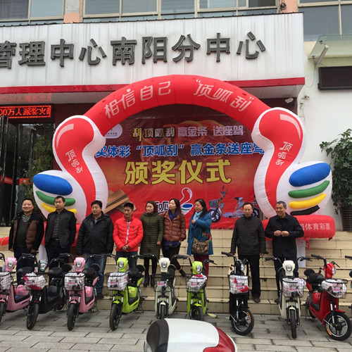 10月29日 河南體彩鶴壁分中心向獲獎彩民頒發(fā)15輛電動車
