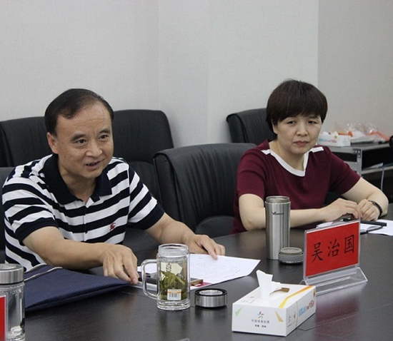 河南省體育局巡視員、黨組成員吳治國(guó)(左)和省體彩中心書記王海新(右)在分中心調(diào)研