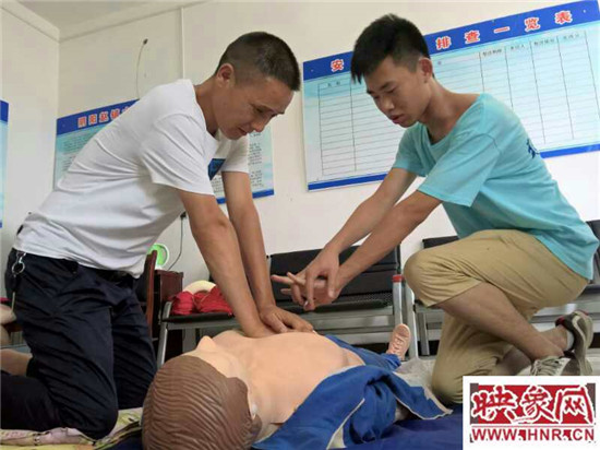 與此同時,地上擺放的人體模型引起了村民的極大興趣,他們在模型周圍坐成一圈,一邊觀察志愿者的演示一邊提問。部分村民還走上前來,在志愿者的指導下練習剛剛學到的心肺復蘇術(shù)。