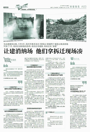 關(guān)于渣土車和建筑垃圾,《河南商報》一直都在關(guān)注。7月30日報道,《河南商報》曾曝光的3輛渣土車被“開除”出鄭州市場;8月26日至28日,《河南商報》刊發(fā)系列報道,關(guān)注鄭州市建筑垃圾問題。