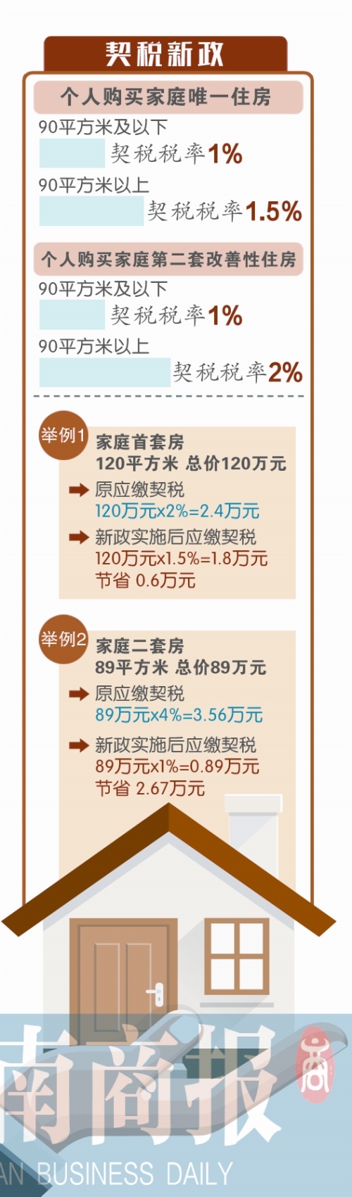 買一套120平方米大的住房,原來動輒需要繳納兩萬多元的契稅,新政實施后能省幾千元;買二套房原來動輒需要繳納三四萬元的契稅,以后最少能省一半。