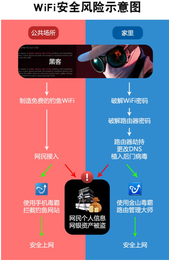 昨日,央視《消費(fèi)主張》報(bào)道了人們?nèi)粘J褂玫臒o(wú)線網(wǎng)絡(luò)存在巨大的安全隱患。在節(jié)目中,央視聯(lián)合金山毒霸安全工程師在多個(gè)場(chǎng)景實(shí)際測(cè)驗(yàn)顯示,火車(chē)站、咖啡館等公共場(chǎng)所的一些免費(fèi)WIFI熱點(diǎn)有可能就是釣魚(yú)陷阱,而家里的路由器也可能被惡意攻擊者輕松攻破。網(wǎng)民在毫不知情的情況下,就可能面臨個(gè)人敏感信息遭盜取,上網(wǎng)如同“裸奔”,訪問(wèn)釣魚(yú)網(wǎng)站,會(huì)直接造成經(jīng)濟(jì)損失。