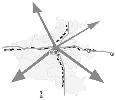 “米”字形快速鐵路網(wǎng),是國務(wù)院批復(fù)《中原經(jīng)濟(jì)區(qū)規(guī)劃》和《鄭州航空港經(jīng)濟(jì)綜合實(shí)驗(yàn)區(qū)發(fā)展規(guī)劃》明確的重大工程,具體就是在京廣和徐蘭“十”字形快速客運(yùn)通道基礎(chǔ)上,建設(shè)鄭州至萬州、鄭州至濟(jì)南、鄭州至合肥、鄭州至太原的高速鐵路。根據(jù)鄭州都市區(qū)整體規(guī)劃,未來將形成以鄭州為中心的“米”字形高鐵輻射網(wǎng)絡(luò),實(shí)現(xiàn)北京、西安、武漢等30多個城市的“3小時經(jīng)濟(jì)圈”。