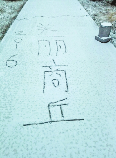 商丘下雪了,有市民把它記在車窗上。記者陳海峰攝