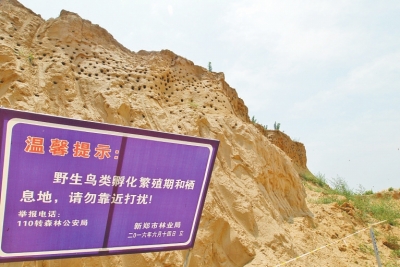 為保護(hù)鳥兒安全度過繁育期,河南省森林公安局、河南省野生鳥類觀察學(xué)會(huì)在土堆前立了一塊警示牌,上書“鳥類棲息地,禁止靠近”,呼吁社會(huì)善待候鳥。而新鄭市林業(yè)局林政科有關(guān)人員在接受記者采訪時(shí)亦稱:“我們只要一接到群眾舉報(bào),立即會(huì)同公安機(jī)關(guān),盡快把這些燕子集中育雛地保護(hù)起來,除告知施工單位停工外,還在一定區(qū)域內(nèi)拉起警戒線,禁止無關(guān)人員驚擾燕子孵卵育雛,今年新鄭市總共有三處燕子育雛地被集中保護(hù),新鄭市保護(hù)崖沙燕的善舉曾得到過中央級(jí)媒體的表?yè)P(yáng),接下來我們會(huì)再接再厲,爭(zhēng)取做得更好?!?/p>