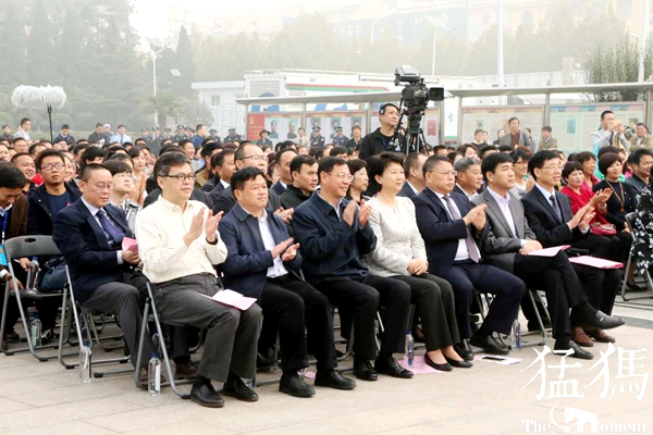 ▲第一排左四為河南省委常委、宣傳部部長趙素萍,左五為河南省委宣傳部副部長、省新聞出版廣電局局長朱夏炎