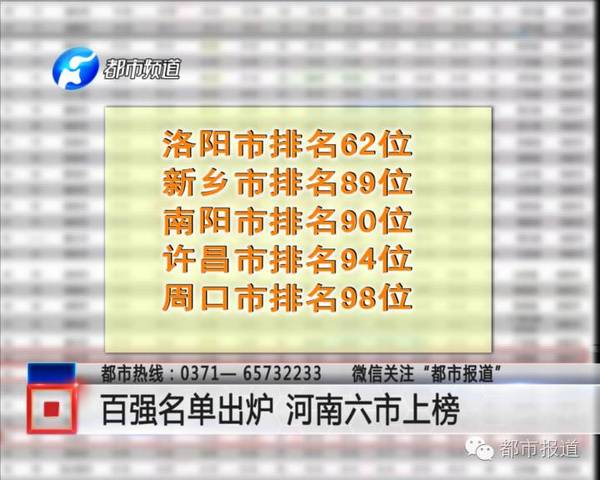 △《都市報(bào)道》:百?gòu)?qiáng)名單出爐 河南六市上榜↑↑↑
