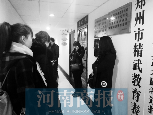 2月15日下午,十多位學生家長來到鄭州市金水區(qū)萬邦茶城旁邊的銀河商務寫字樓,商量怎么找到“鄭州精武教育學?!钡呢撠熑恕G耙惶鞄е⒆觼砩险n時,發(fā)現學校的門鎖著,名叫“于泉林”的負責人也失聯(lián)了。“電話能打通,就是始終不接電話。”學生家長許女士說,她的電話已經被“于泉林”拉黑了。