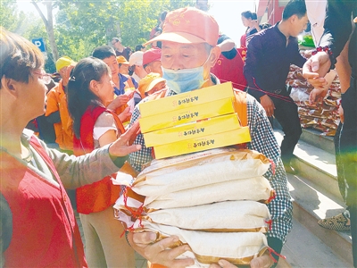 昨日,陽光燦爛,愛心粥屋舉辦了簡單的開業(yè)儀式之后,蔣愛榮等愛心人士為到場的環(huán)衛(wèi)工們發(fā)放了大米、理療品等愛心企業(yè)贊助的禮物(如圖)。
