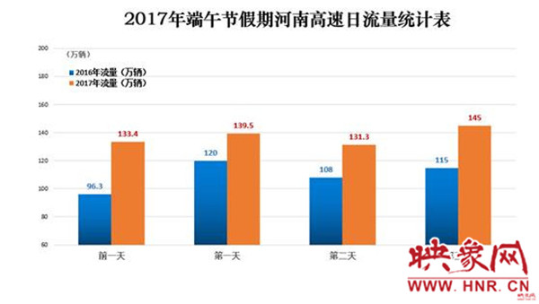 映象網快訊(記者 阮海峰 文/圖)5月30日,映象網記者從河南省交通廳獲悉,今年“端午”假期河南高速出口總流量為415.8萬輛,與2016年343萬輛同比上漲21%。假期日均流量為138.6萬輛,與2016年114萬輛同比上漲21.5%。為2017年上半年日均流量120萬輛的1.15倍。