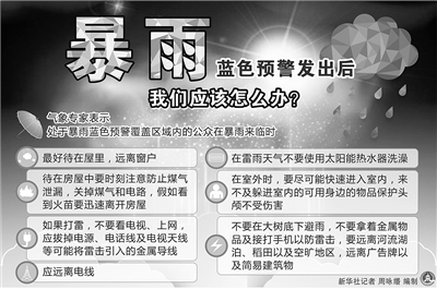 對于雨天不得不出行的市民,市防汛辦工作人員也提醒,一些安全常識要牢記,如雷雨天氣中不要在涵洞、立交橋下、低洼地、較高的墻體、樹木下避雨,有警示標(biāo)志的地段切勿進(jìn)入。遇到打雷,行人應(yīng)停止行走,兩腳并攏中蹲下。汛期當(dāng)橋涵、隧道積水超過30厘米,普通道路積水超過40厘米時,交警部門將封閉相關(guān)路段交通,設(shè)置禁止通行標(biāo)示牌。市民如遇鐵路立交橋下積水,應(yīng)留意水位標(biāo)識和相關(guān)警示,在水深未知的情況下勿冒險(xiǎn)涉水。在強(qiáng)降雨過程中,為加快退水,市政人員會掀開井蓋,市民要留意警示標(biāo)志,繞開窨井,確保安全。若車輛不慎掉入深水區(qū),切勿打開車窗或試圖打開車門,應(yīng)努力呼吸,找好準(zhǔn)備逃生的門把手,等水慢慢涌入車內(nèi),即將漫到車頂時,深吸一口氣,然后屏氣打開車門迅速游出。