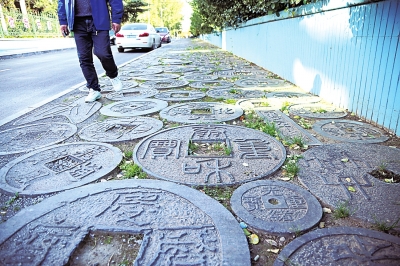“真是一條土豪的人行道?!笔忻褛w大爺告訴記者,他就住在附近小區(qū),生活了幾十年,鋪滿“錢幣”的道路,是一種文化,每次走在財富之路上,感覺都不一樣,有一種厚重感。