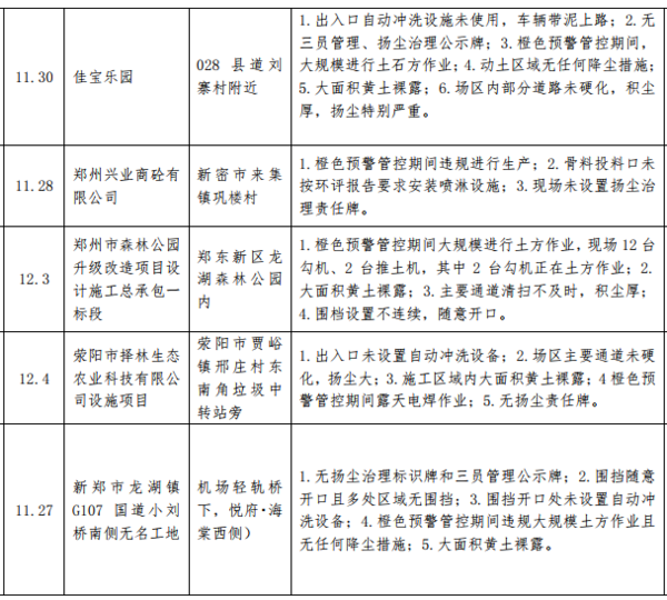 12月7日,記者從鄭州市環(huán)境污染防治攻堅(jiān)辦了解到,11 月 27 日至 12 月 3 日,鄭州市環(huán)境污染防治督導(dǎo)組重點(diǎn)對(duì)全市"封土行動(dòng)"方案、橙色預(yù)警管控措施落實(shí)和 30天沖刺行動(dòng)方案落實(shí)情況進(jìn)行督導(dǎo)檢查。