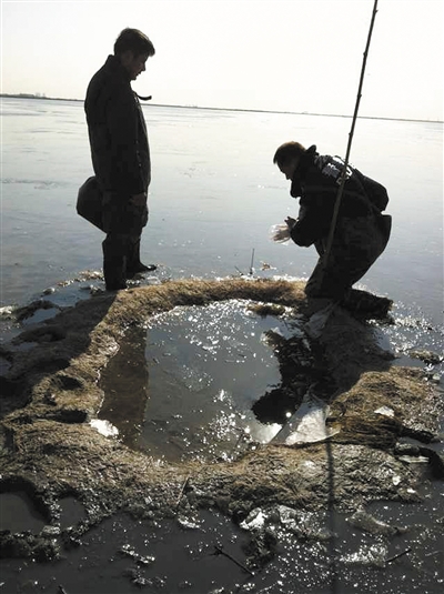 “毒池”位于北大港濕地保護(hù)區(qū)“萬畝魚塘”的中央地帶。在距濕地北岸約1公里處,警方發(fā)現(xiàn)了第一處毒池。在廣闊而平坦的水面上,這處長約1.5米,寬約1米的人造土坑十分顯眼。