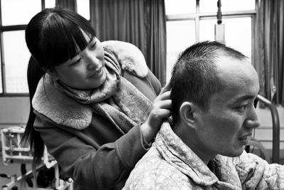 侯樺在查看劉哲頭上的傷痕