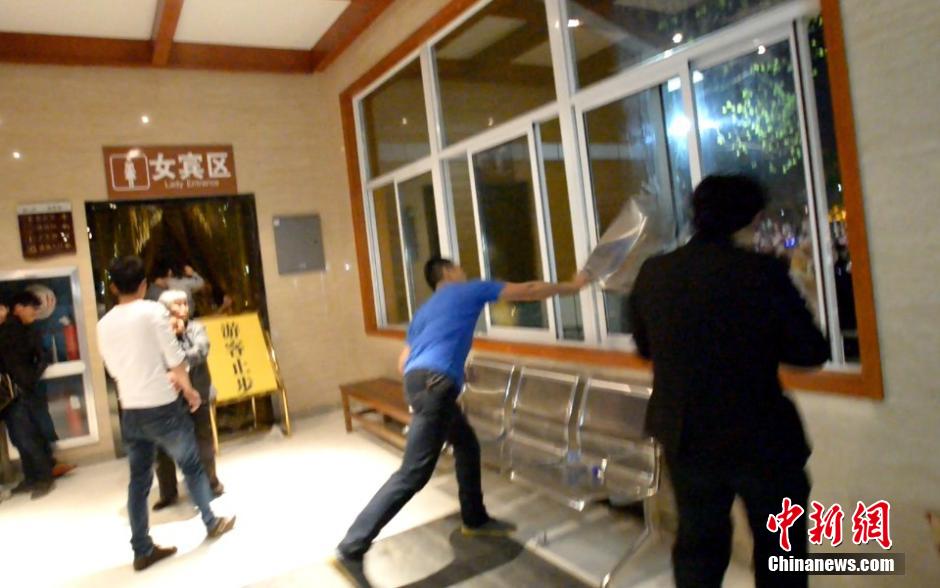 4月30日,浙江杭州蕭山湘湖金沙戲水螢飛夜主題活動,游客因螢火蟲數(shù)量稀少未達到主辦方所承諾的觀賞效果而引發(fā)雙方?jīng)_突,上演萬人齊喊退票。景區(qū)部分設(shè)施被打砸。中新社發(fā) 李晨韻 攝