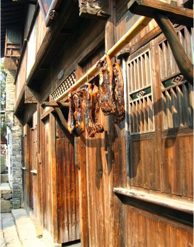 在桂林,桂林人尤其喜歡把腌制臘肉作為春節(jié)迎客送禮的美食。每年秋冬時期,正是桂林人腌制臘肉的好時機。這時候,你只需要到桂林老市民家中或小區(qū)走走,在屋檐下、窗臺前,陽臺下,甚至晾衣服的繩子上都能看到一串串令人垂涎三尺的臘肉,常常形成這一帶的臘肉肉林,引來路人或者經(jīng)過的小動物的佇立,但是站在下面的我們,只能眼巴巴的望“肉”止渴??纯聪旅孢@些圖。