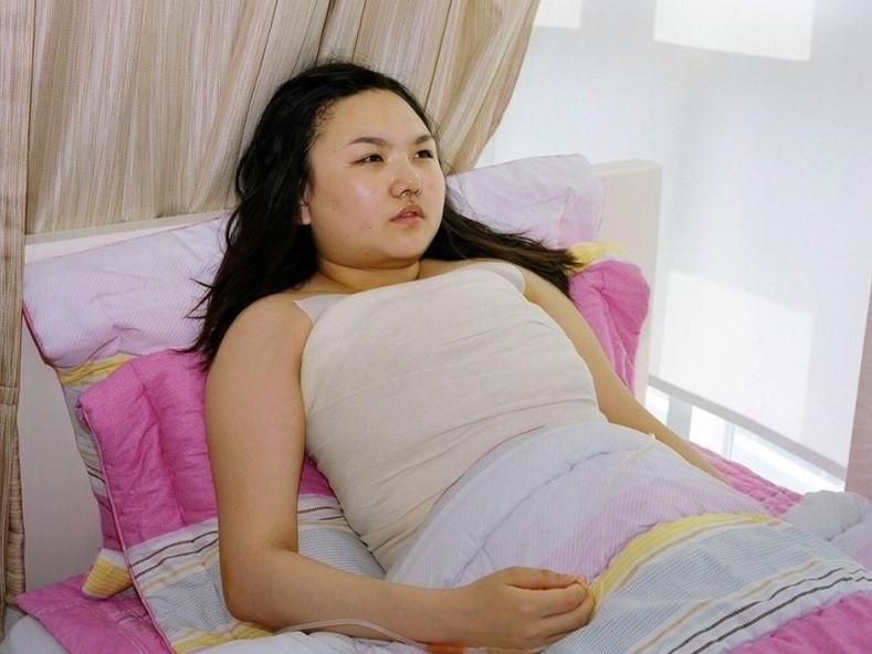 這位做了瘦身瘦臉手術的女孩雙手環(huán)抱,從墻上她的影子中已經可以看出那預想中的輪廓。