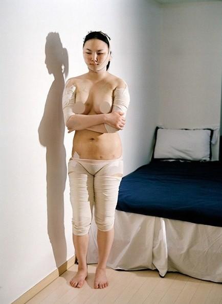 束身衣上下的身型是她的過去和未來,滿是術后的淤青,疼痛成為美麗代價的一部分。