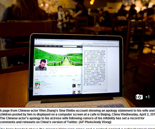 終于,出現(xiàn)在外國媒體報道中的華人明星名字不再只是鞏俐、章子怡等國際腕兒了。霸占國內(nèi)娛樂圈頭條的“文章出軌事件”,已經(jīng)漂洋過海到了全球各地,出現(xiàn)在多家國外媒體的版面上。包括英國BBC、《每日郵報》、美國《美聯(lián)社》、《紐約每日新聞報》、《好萊塢記者報道》、《娛樂在線》、澳洲《悉尼先驅(qū)晨報》、加拿大CBC、越南《民智報》新聞網(wǎng)站(dantri.com.vn)等多家外媒都對此事進行了報道,并集體關(guān)注文章道歉微博所打破的社交媒體轉(zhuǎn)發(fā)記錄。