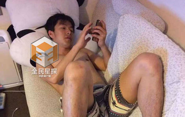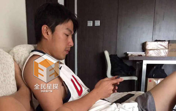 圖中,一雙女人的美腿入鏡,李威坐在沙發(fā)上,眼神一刻不離手機(jī)屏幕。(圖文來(lái)自:全民星探app)