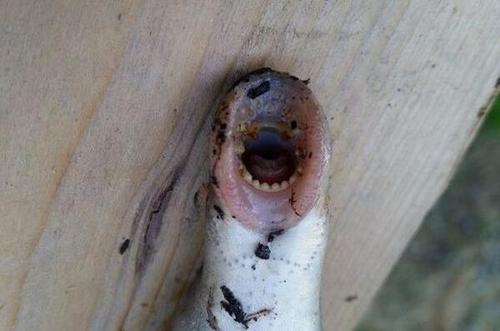 只見這條形似鰻魚的生物正張著圓圓的大嘴,里面布滿了鋒利的牙齒,頭部側面均勻分布著七個小孔。莫非這是什么新物種?這樣想著,男子試圖將它捉住。