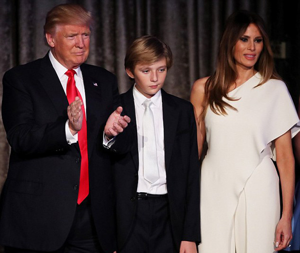 國際在線專稿:據(jù)英國《每日郵報(bào)》11月20日?qǐng)?bào)道,美國新當(dāng)選總統(tǒng)特朗普日前表示,自己將于明年1月20日入住白宮,但妻子梅拉尼婭和10歲的小兒子巴倫要繼續(xù)住在紐約的特朗普大廈,直到明年6月巴倫本學(xué)年學(xué)業(yè)結(jié)束。此番言論卻惹惱了紐約當(dāng)?shù)厥忻?,他們?dān)心安檢、封路等措施會(huì)更加惡化城市的交通狀況。