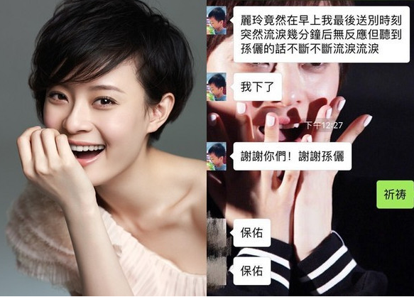 據(jù)臺(tái)灣媒體《東森新聞云》3月13日報(bào)道,大陸女星孫儷因?yàn)檠莩觥逗髮m甄嬛傳》、《羋月傳》等戲,紅透兩岸三地。最近有名叫“麗玲”的粉絲腦死昏迷36小時(shí);沒想到孫儷得知,本人竟錄音,聲聲喚“趕緊醒過來”;并答應(yīng)愛畫圖的她,等她醒來,“我就坐在你面前讓你畫。”沒想到她聽完竟流淚,也醒過來了。