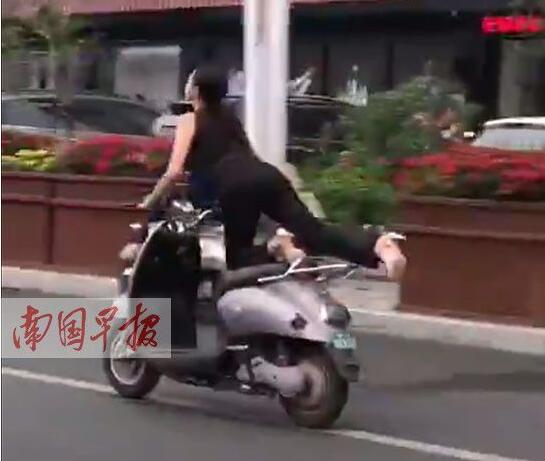 4月24日,有網(wǎng)友在微博上發(fā)布一段視頻:一女車(chē)手騎電驢的方式有些奇葩,車(chē)輛行駛過(guò)程中,女子突然往后伸出大長(zhǎng)腿,擺出“飛行”姿勢(shì)一路前行?!薄 ∵€有網(wǎng)友調(diào)侃說(shuō),“沒(méi)想到你是這樣深藏不露的大長(zhǎng)腿”,認(rèn)為該女子的駕車(chē)行為頗為奇葩。