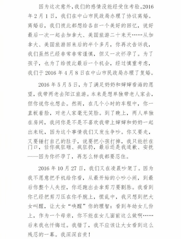 劉洲成凌晨發(fā)長(zhǎng)文否認(rèn)家暴