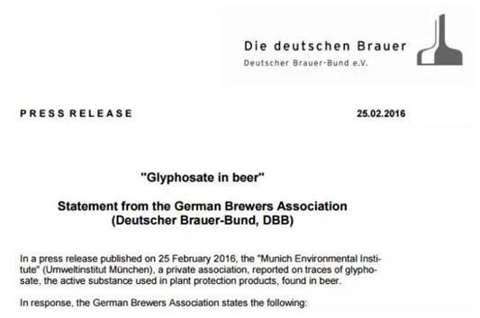 新聞中提到,14款熱銷啤酒檢測出農(nóng)藥殘留的結(jié)果,是由慕尼黑環(huán)境研究所公布的研究報告中顯示的。對此,鐘凱表示,慕尼黑環(huán)境研究所是一個非官方的私營機構,而草甘膦作為合法的農(nóng)藥在德國和全世界已經(jīng)使用了長達幾十年。