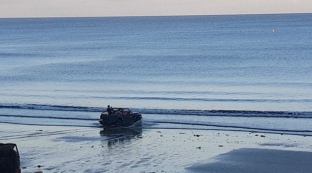 據(jù)《每日郵報(bào)》7月27日?qǐng)?bào)道,近日,在英國(guó)康沃爾郡一間名為“The Hidden Hut”的海邊餐廳里,數(shù)百名正在享用大餐的顧客目睹了一輛吉普車在海上化身成快艇高速行駛的全過程。” 據(jù)其他目擊者反映,當(dāng)吉普車在海面上像快艇一樣高速行駛的時(shí)候,全場(chǎng)驚呆了,接著爆發(fā)出歡呼聲和掌聲。