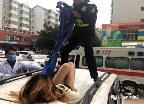 據(jù)來賓市公安局城警支隊(duì)東盟警務(wù)站覃警官介紹,當(dāng)天上午8時20分左右,他們接到群眾報警后趕到現(xiàn)場,看到一名年輕女子躺在一輛面包車頂上,嘴唇出血,腰部有血跡。
