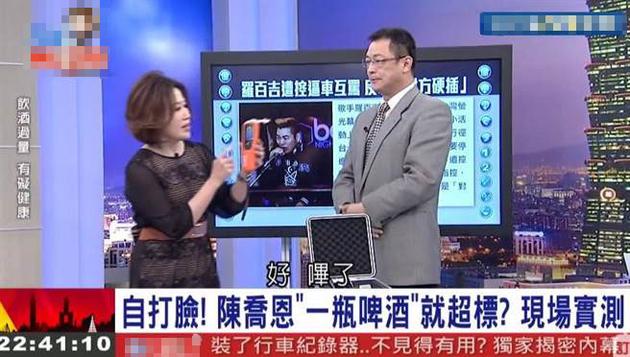 該警官在節(jié)目現場喝啤酒實測,首先喝完一罐330ml的啤酒,測得酒測值為0.08,接著喝完第2罐啤酒,酒測值也只到0.16,與陳喬恩所謂的一罐啤酒飆至0.67的數字相差甚遠,也讓主持人驚呼:“所以陳喬恩就在說謊嘛!”