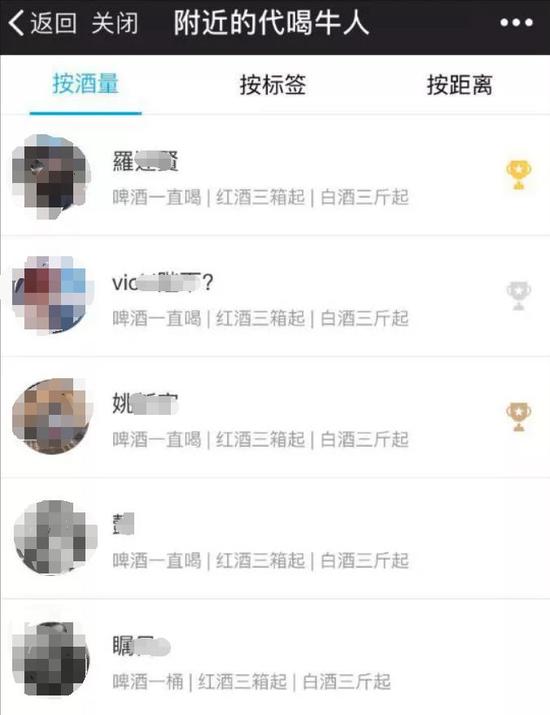 懷著對(duì)這項(xiàng)“神服務(wù)”的好奇,韓國(guó)記者還在中國(guó)特地體驗(yàn)了一番。據(jù)《中央日?qǐng)?bào)》報(bào)道,4日晚,韓國(guó)記者辦公室所在的北京市中心建國(guó)門(mén)一帶,記者嘗試使用了該軟件。建國(guó)門(mén)這附近還不算娛樂(lè)區(qū)域,但在半徑400米以?xún)?nèi)地圖上跳出10名代喝人的位置。記者在點(diǎn)擊其中一名代喝人后立即彈出他的自我介紹——“奧運(yùn)會(huì)金牌級(jí)喝酒選手”,“酒量是白酒兩瓶、啤酒一箱”。