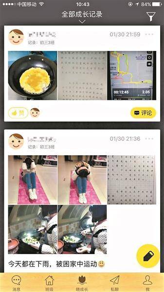 每日修煉表除了包括練字、完成“買菜+做飯+洗碗”等家務(wù)、跑步等必做任務(wù)外,還包括寫觀察日志、去圖書館、博物館等選做任務(wù)。而放假以來,這個(gè)平臺一直很熱鬧,很多同學(xué)每天一起床就開始記錄自己的寒假生活。