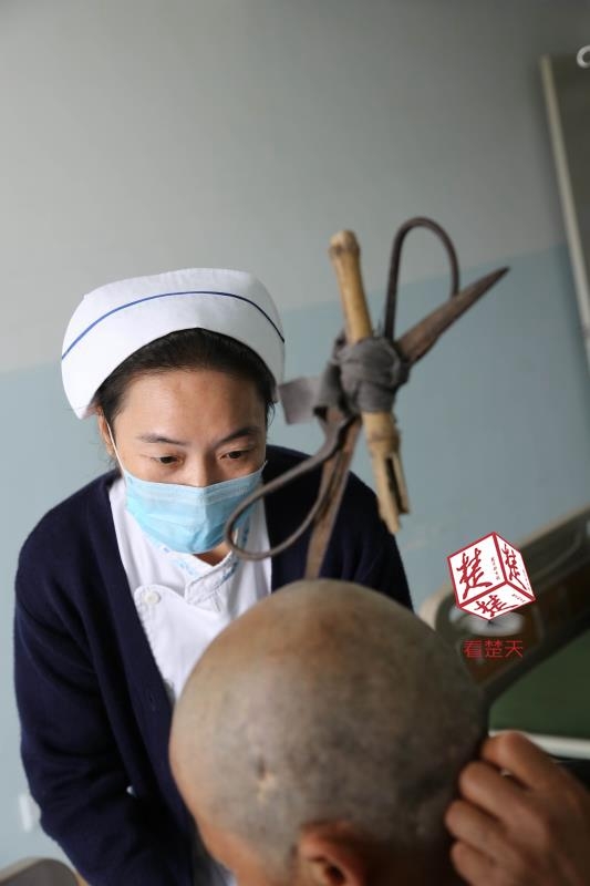 4月4日清晨,襄陽市樊城區(qū)太平店鎮(zhèn)57歲的農(nóng)村婦女沈某,在采摘香椿嫩芽時,綁在竹桿上的剪刀因竹子腐朽不慎折斷,剪刀斜插入頭顱。經(jīng)過及時搶救,目前脫離生命危險。
