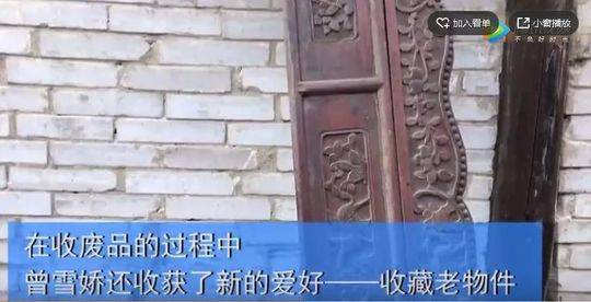 在收廢品的過程中,曾雪嬌也會同時收藏一些老物件。從剛?cè)胄械浆F(xiàn)在,就收到明清的銅錢,還有復(fù)古的煙斗,一顆釘子都沒有的雕花木門等各式各樣的小物件,“就像尋寶一樣,你會在這個過程中發(fā)現(xiàn)驚喜,并且樂此不疲……”