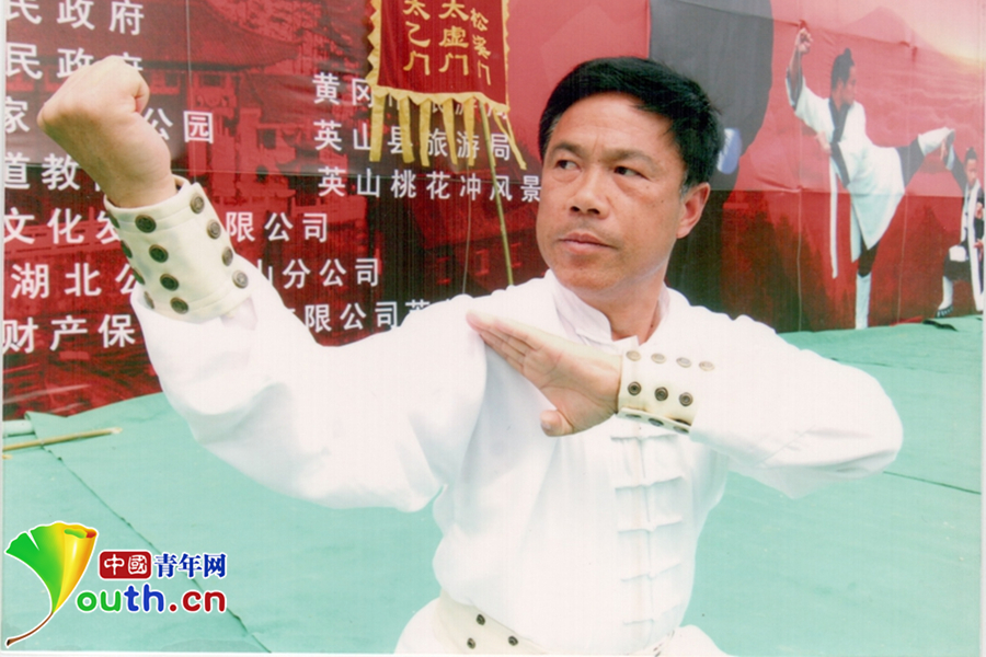 2007年5月在英山縣舉辦的第一屆“南武當杯”國際武術(shù)節(jié)上,岳家拳傳承人張業(yè)金現(xiàn)場表演獻技。