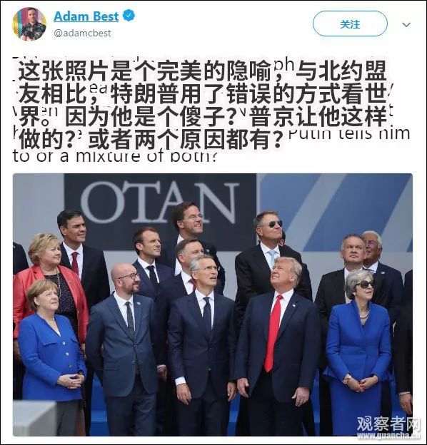 該照片目前已經(jīng)被西方各大主流媒體使用,作為其報(bào)道北約峰會(huì)的頭圖,比如美國(guó)《新聞周刊》、《時(shí)代》等。