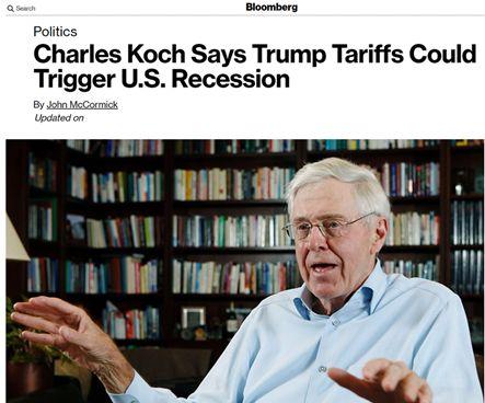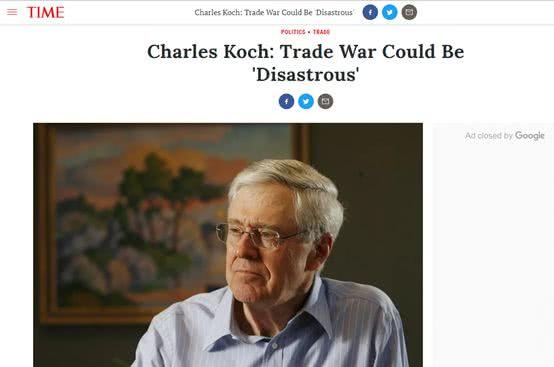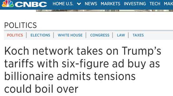 可隨著之后特朗普對(duì)中國(guó)等國(guó)發(fā)動(dòng)貿(mào)易戰(zhàn)的行為,以及相關(guān)惡果的逐漸顯現(xiàn),科赫家族的最新表態(tài)也與今年1月的言論形成了鮮明的對(duì)比。
